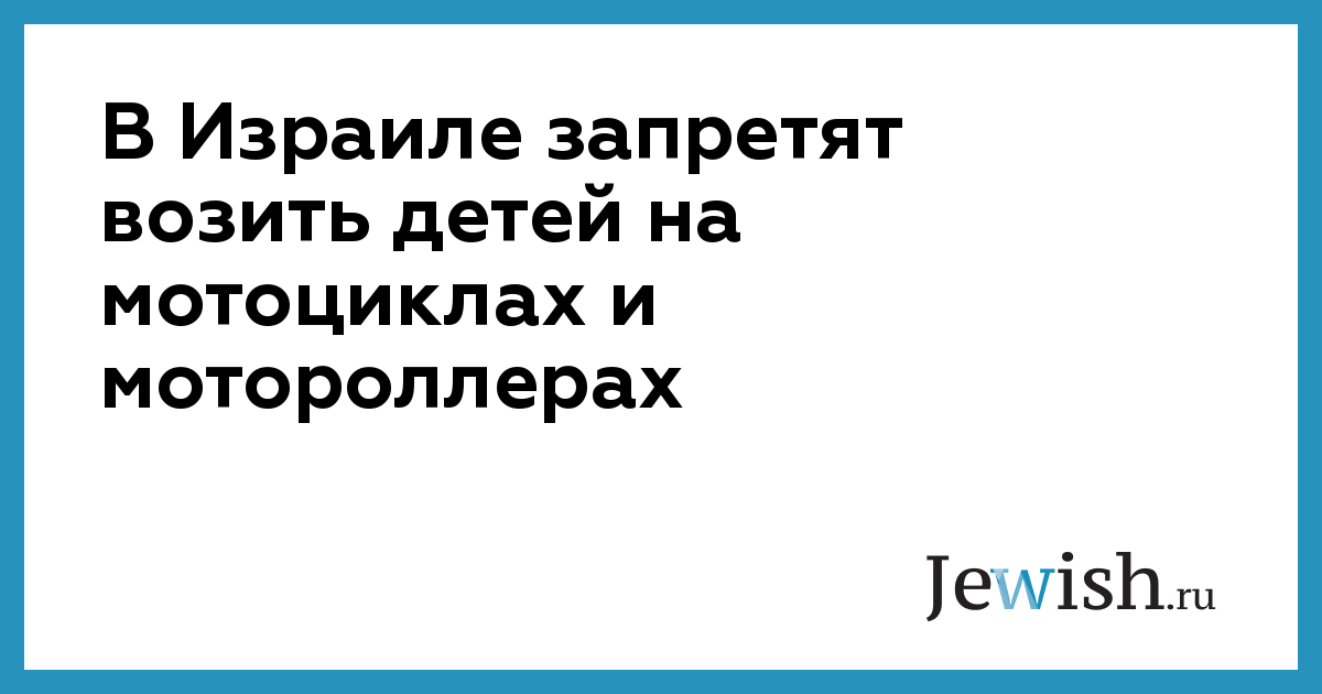 Таким образом министерство транспорта пытается пресечь опасную тенденцию перевозки детей на мотоциклах. Предложение министра Шитрита, как ожидается, будет утверждено в течение недели. После утверждения данного положения финансовой комиссией, Шитрит подпишет указ, и он официально войдет в силу.