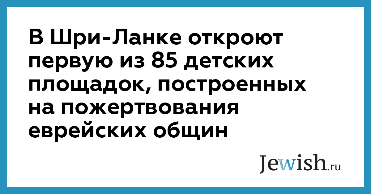 Сегодня в Шри-Ланке состоится церемония открытия первой из 85 детских игровых площадок, строительство которых запланировано еврейскими благотворительными организациями в пострадавших от стихийного бедствия регионах страны.