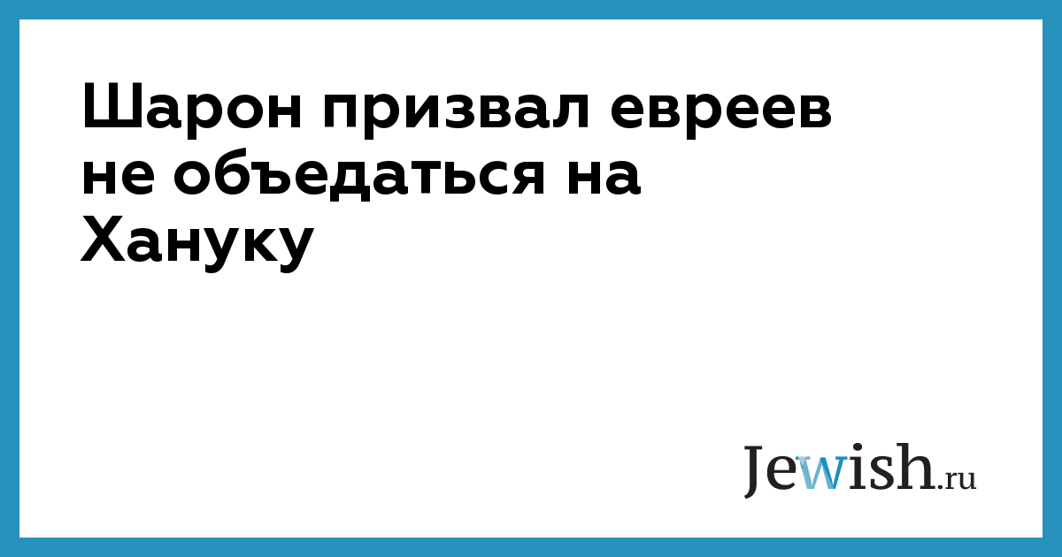 Премьер-министр Израиля Ариэль Шарон призвал евреев, вступивших в восьмидневный период празднования Хануки, не злоупотреблять картофельными оладьями и жареными пирожками, традиционными для этого торжества.