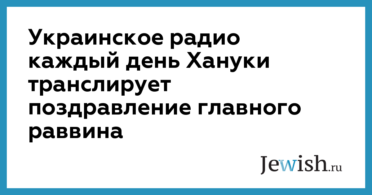 Украинское радио каждый день Хануки транслирует поздравление главного раввина