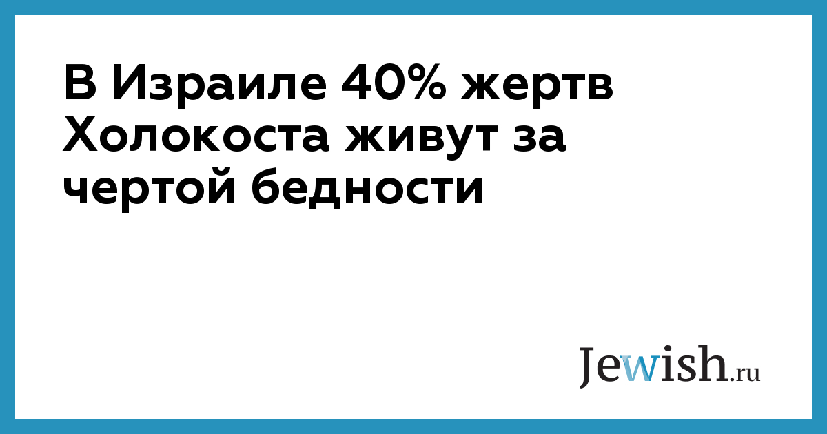 По словам председателя Фонда помощи жертвам Холокоста Зеэва Фактора, около 40% граждан Израиля, переживших Холокост, сейчас живут за чертой бедности.