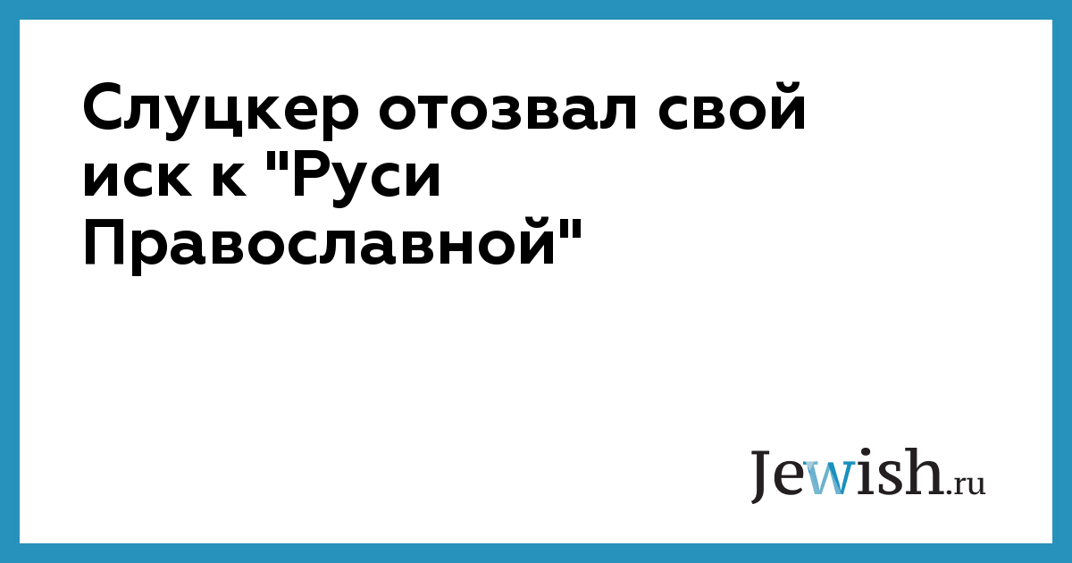 Слуцкер отозвал свой иск к "Руси Православной"