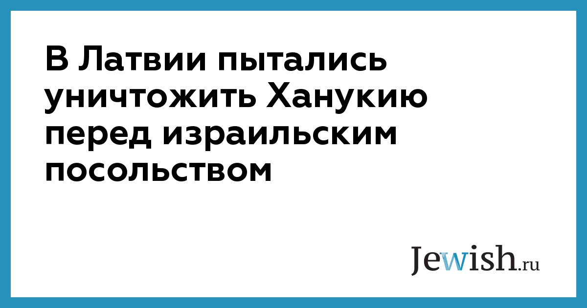 В Латвии пытались уничтожить Ханукию перед израильским посольством