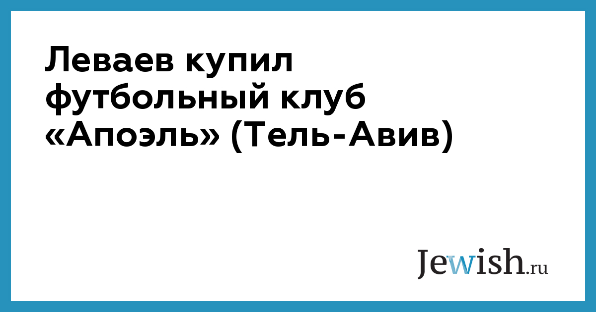 Вчера вечером были согласованы условия передачи известному бизнесмену Льву Леваеву прав владения футбольным клубом «Апоэль» (Тель-Авив). Леваев перечислит руководству команды 20 миллионов шекелей, что составляет 75% нынешней коммерческой стоимости клуба.
