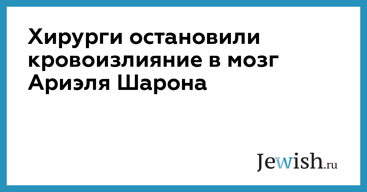 Хирурги остановили кровоизлияние в мозг Ариэля Шарона в четверг. Операция завершена. Основные показатели состояния организма (пульс, дыхание, температура) — стабильны, сообщает Reuters. Но, по их словам, он по-прежнему в критическом состоянии. "Мы провели премьер-министру томографию, которая показала, что кровотечение остановлено", — заявил Шломо Мор-Юсеф из больницы Хадаса. Сейчас Шарон перевезен из операционной в палату интенсивной терапии неврологического отделения.