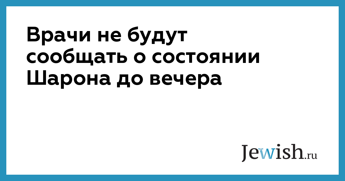 Врачи не будут сообщать о состоянии Шарона до вечера
