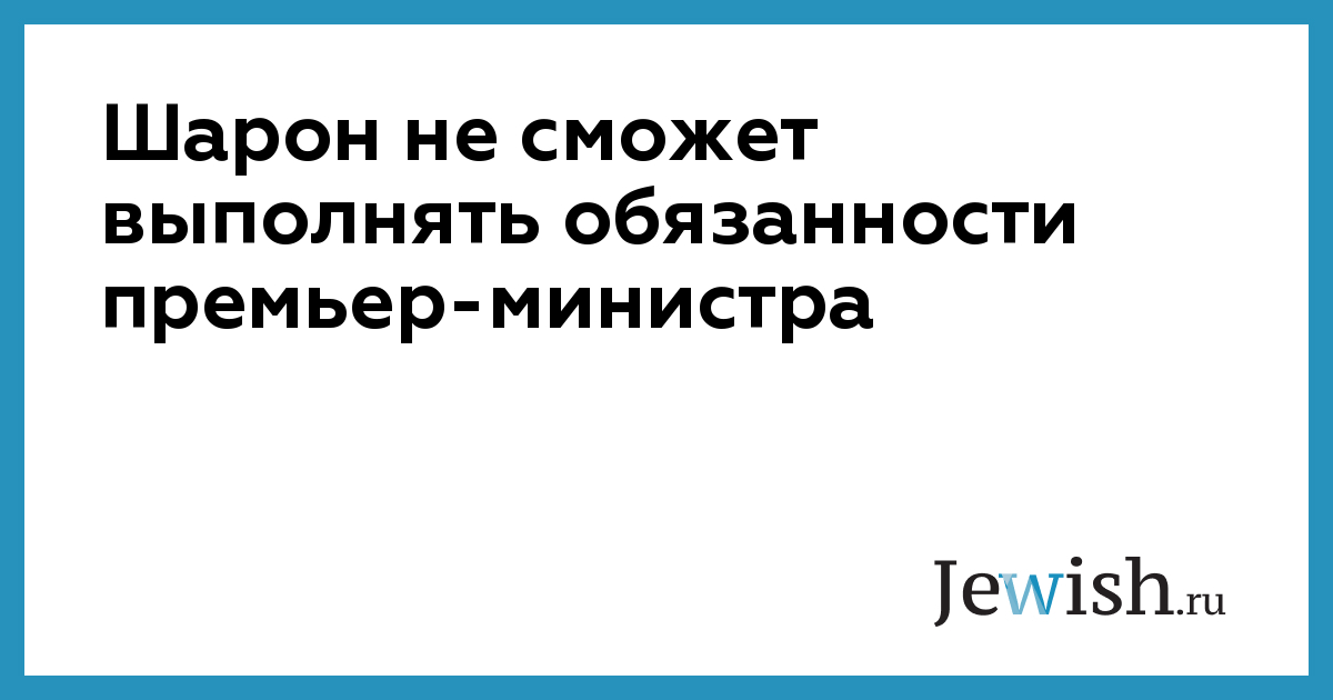 Ариэль Шарон не сможет выполнять обязанности премьер-министра. Об этом заявил сегодня один из оперировавших его хирургов Хосе Коэн. «Шарон не сможет возглавлять правительство, но скорее всего, он будет говорить и понимать происходящее», — цитирует слова медика ИТАР-ТАСС.
