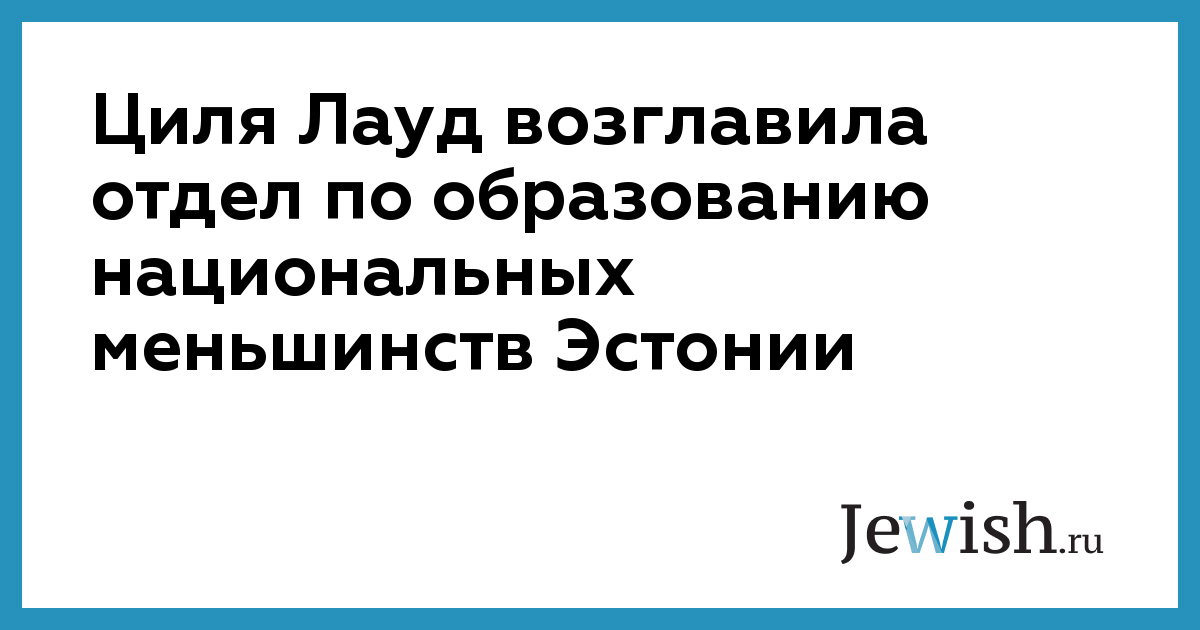 Созданный при Министерстве образования и науки Отдел по образованию национальных меньшинств возглавила Циля Лауд, экс-председатель Еврейской общины Эстонии. Одной из самых главных задач отдела будет подготовка с 1 сентября 2007 года частичного перевода русских гимназий на эстонский язык обучения.