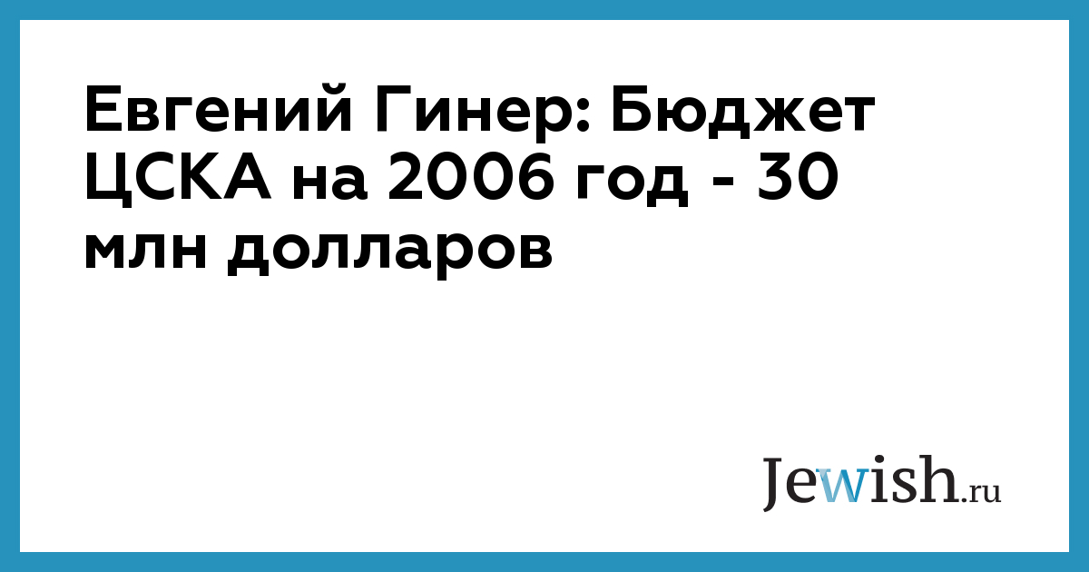 Евгений Гинер: Бюджет ЦСКА на 2006 год — 30 млн долларов