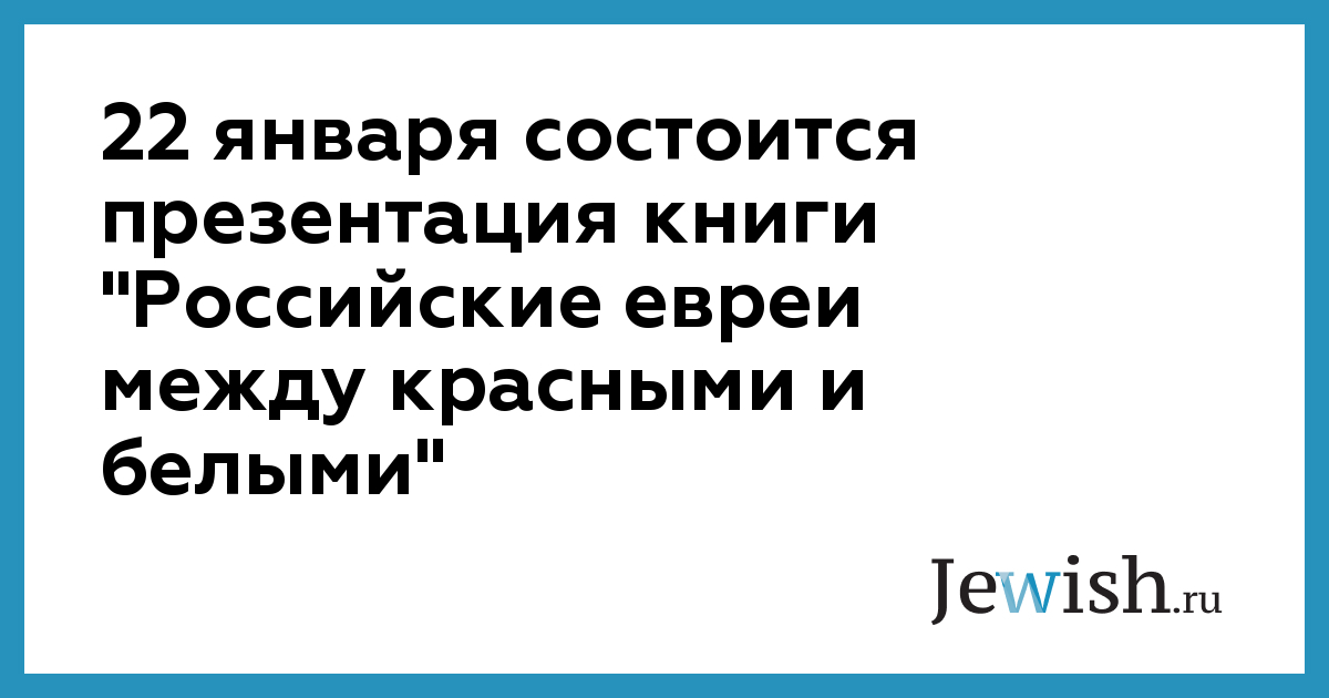 22 января состоится презентация книги "Российские евреи между красными и белыми"
