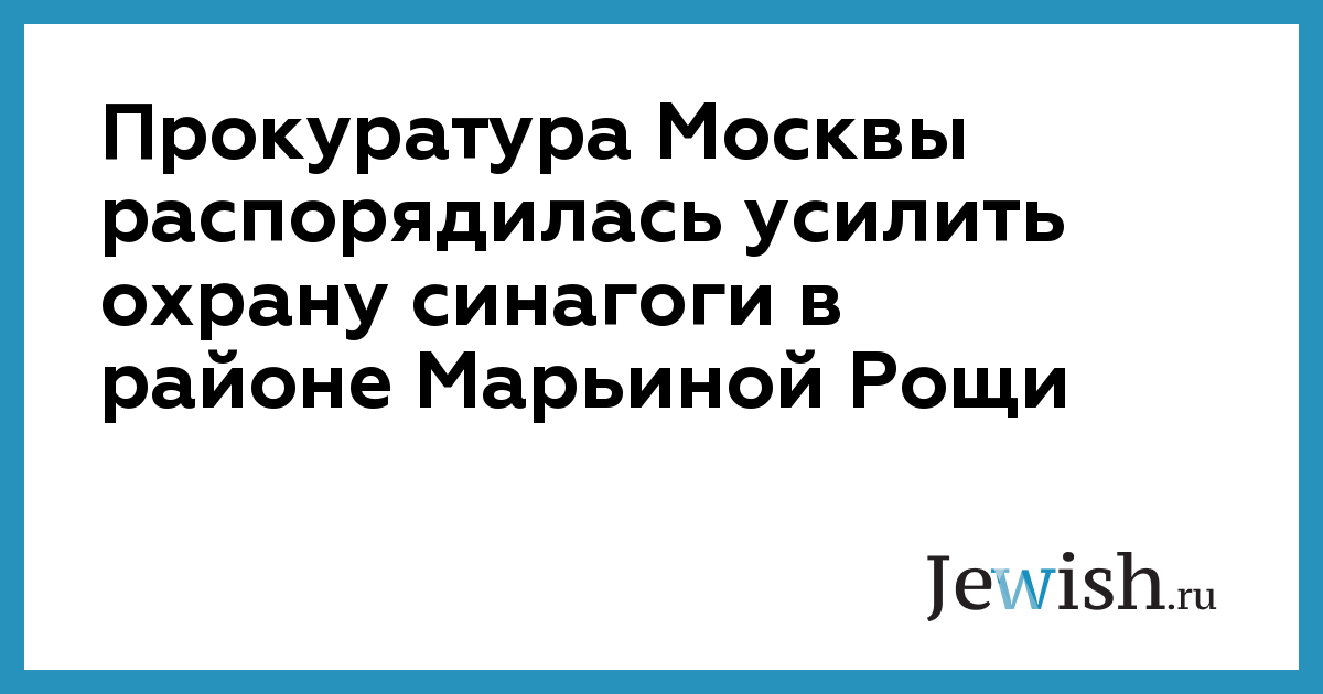Прокуратура Москвы распорядилась усилить охрану синагоги в районе Марьиной Рощи