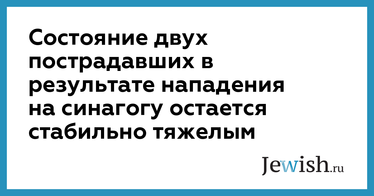 Состояние двух пострадавших в результате нападения на синагогу остается стабильно тяжелым