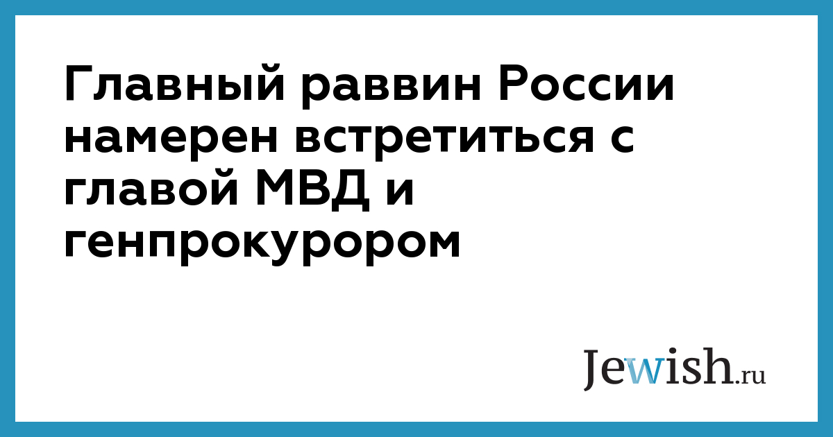 Главный раввин России намерен встретиться с главой МВД и генпрокурором