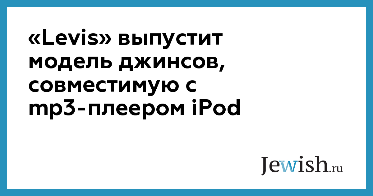 Представитель всемирно известной американской фирмы по производству джинсов «Levis», сообщил в среду 11 января о намерении выпустить осенью этого года модель джинсов, совместимую с флэш-mp3-плеером iPod. Их счастливый владелец сможет легко управлять своим «айподом» с помощью встроенного пульта, сообщает агентство Франс Пресс.