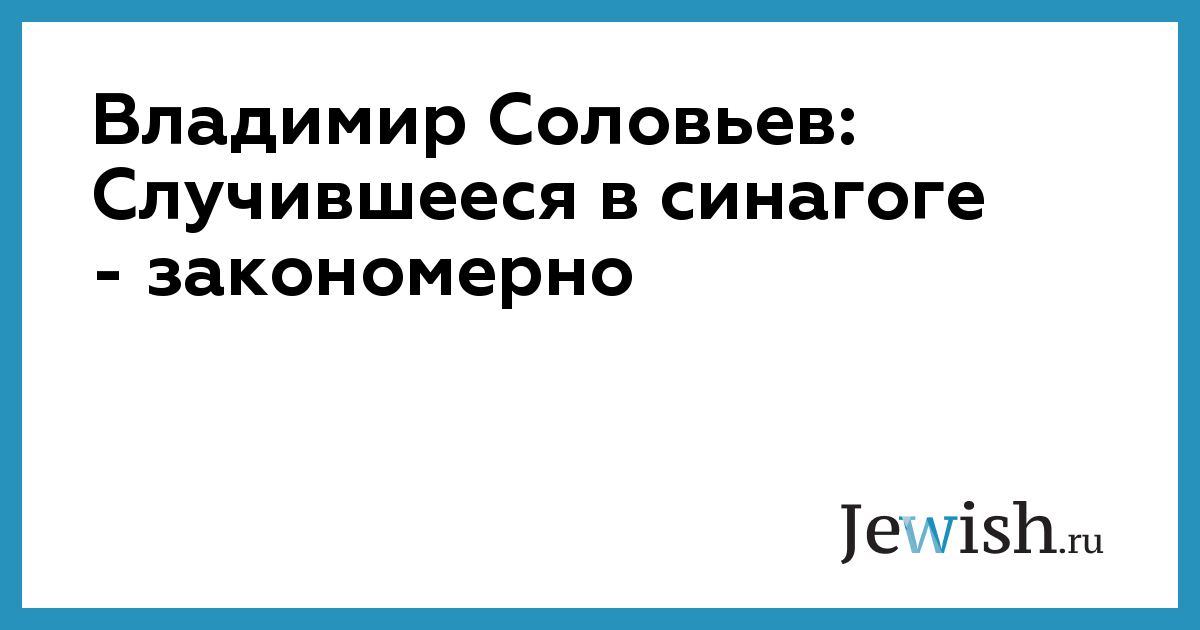 Владимир Соловьев: Случившееся в синагоге — закономерно