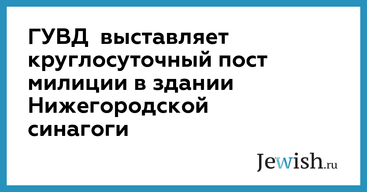 ГУВД Нижегородской области с 14 января выставляет круглосуточный пост милиции в здании Нижегородской синагоги на улице Грузинская (Нижегородский район)