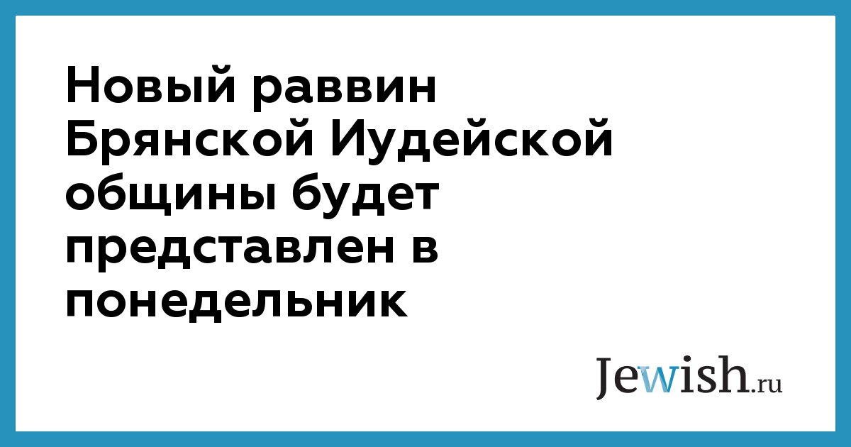 Новый раввин Брянской Иудейской общины будет представлен в понедельник