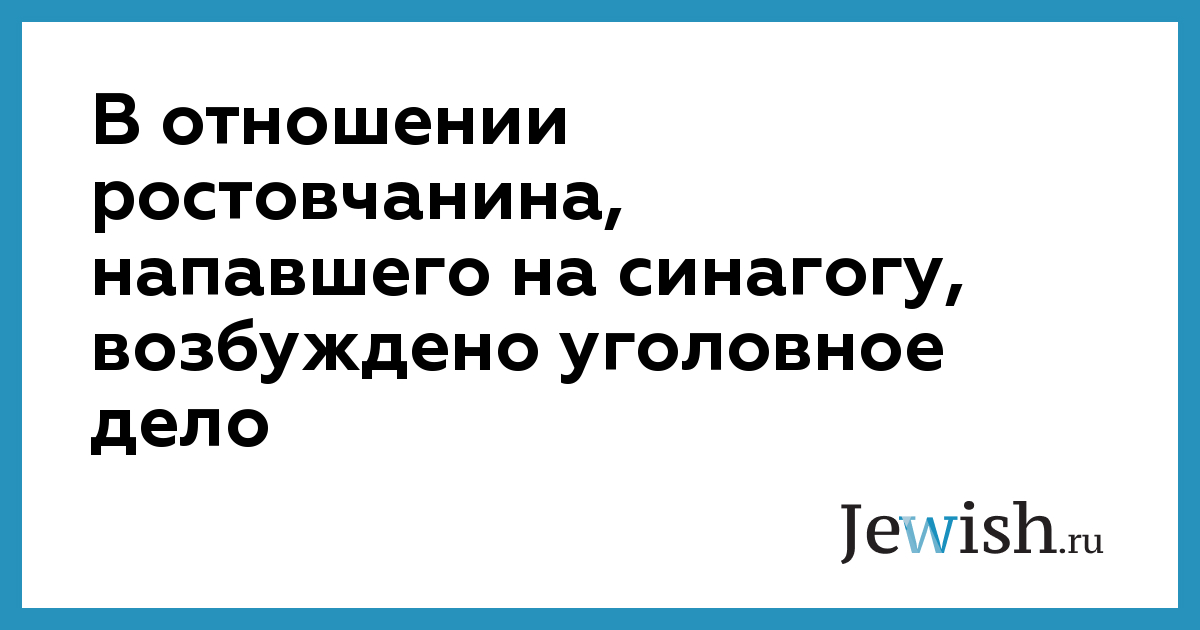 В отношении ростовчанина, напавшего на городскую синагогу, возбуждено уголовное дело по обвинению в хулиганстве. Ранее суд приговорил его к пяти суткам административного ареста. Уголовное дело уже принято к производству, передает радиостанция "Эхо Москвы".