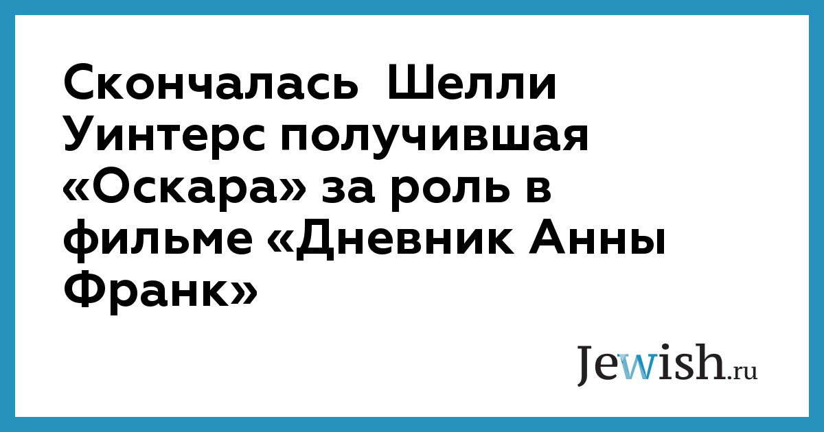 Cкончалась Шелли Уинтерс получившая «Оскара» за роль в фильме «Дневник Анны Франк»