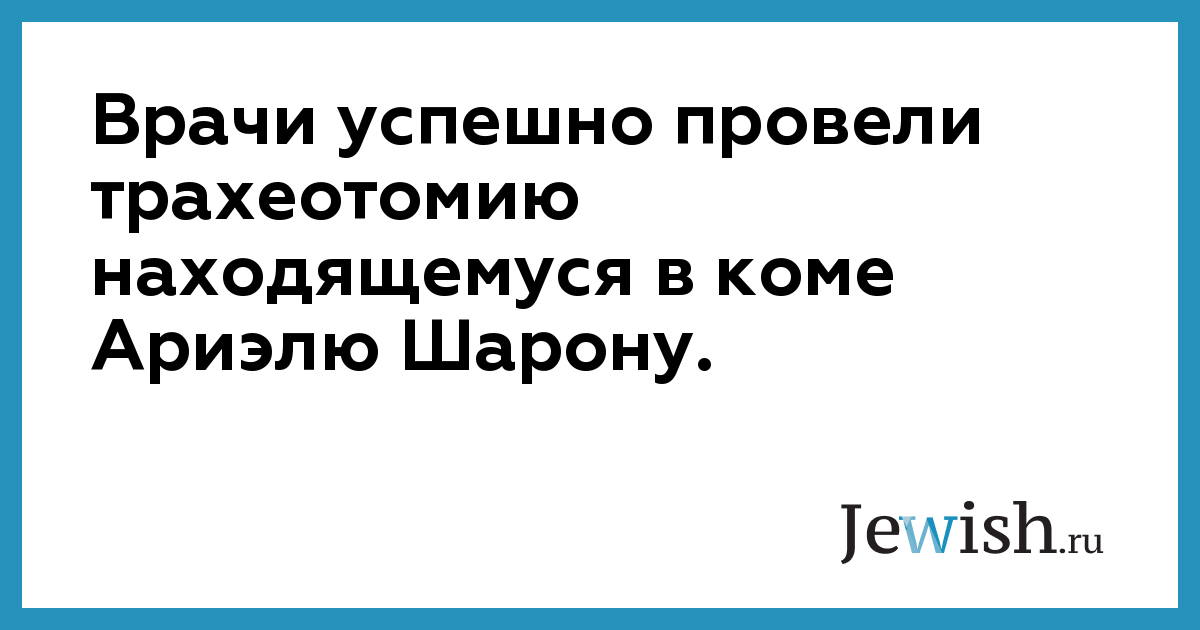 Врачи успешно провели трахеотомию находящемуся в коме премьер-министру Израиля Ариэлю Шарону. Об этом говорится в официальном заявлении госпиталя «Хадасса».
