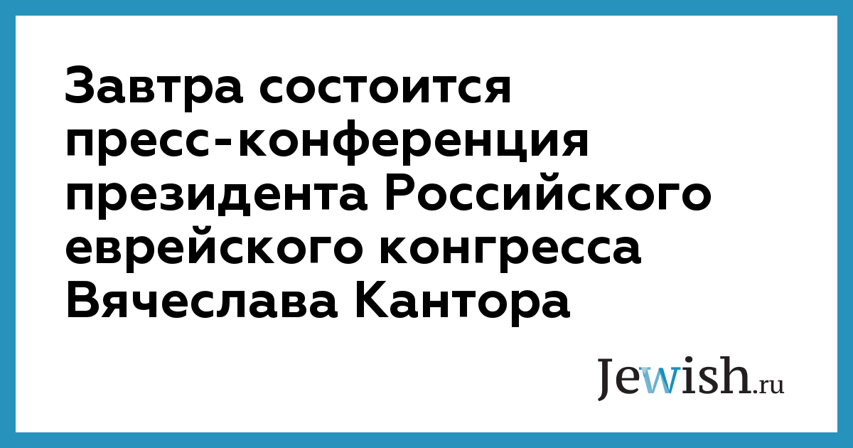 Завтра состоится пресс-конференция президента Российского еврейского конгресса Вячеслава Кантора