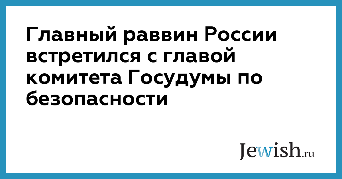 Главный раввин России встретился с главой комитета Госудумы по безопасности