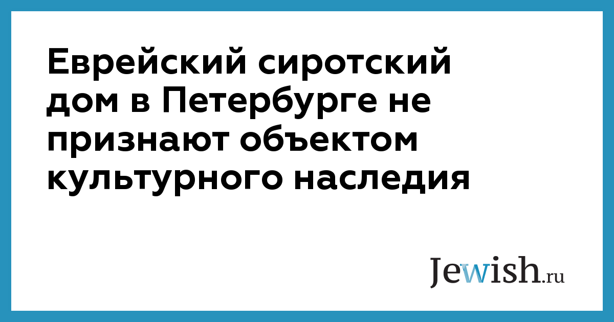 Еврейский сиротский дом в Петербурге не признают объектом культурного наследия
