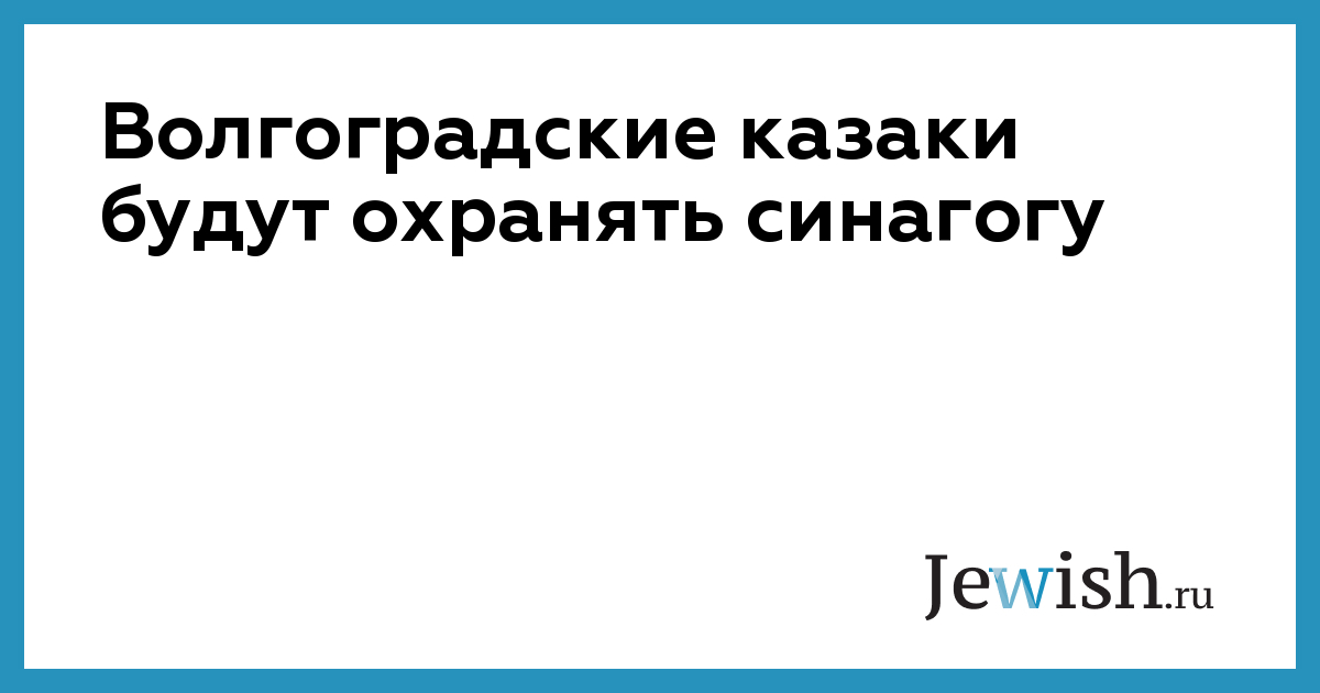 Волгоградские казаки будут охранять городскую синагогу и Волгоградский еврейский общинный центр. Такое решение приняло руководство администрации региона. Просьба о помощи поступила к казакам от самой еврейской общины, пишет в понедельник "Независимая газета". Между тем, по словам первого вице-губернатора Юрия Сизова, решение о привлечении донских казаков к охране синагоги было принято в администрации еще до этого. "Если понадобится, дополнительные силы донских казаков будут выделены и для охраны других еврейских религиозных и культурных организаций", — заявил Ю.Сизов.