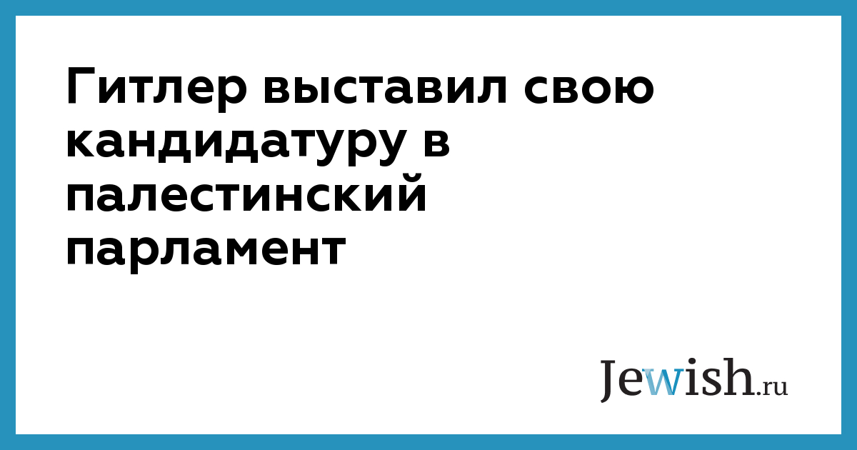 Гитлер выставил свою кандидатуру в палестинский парламент