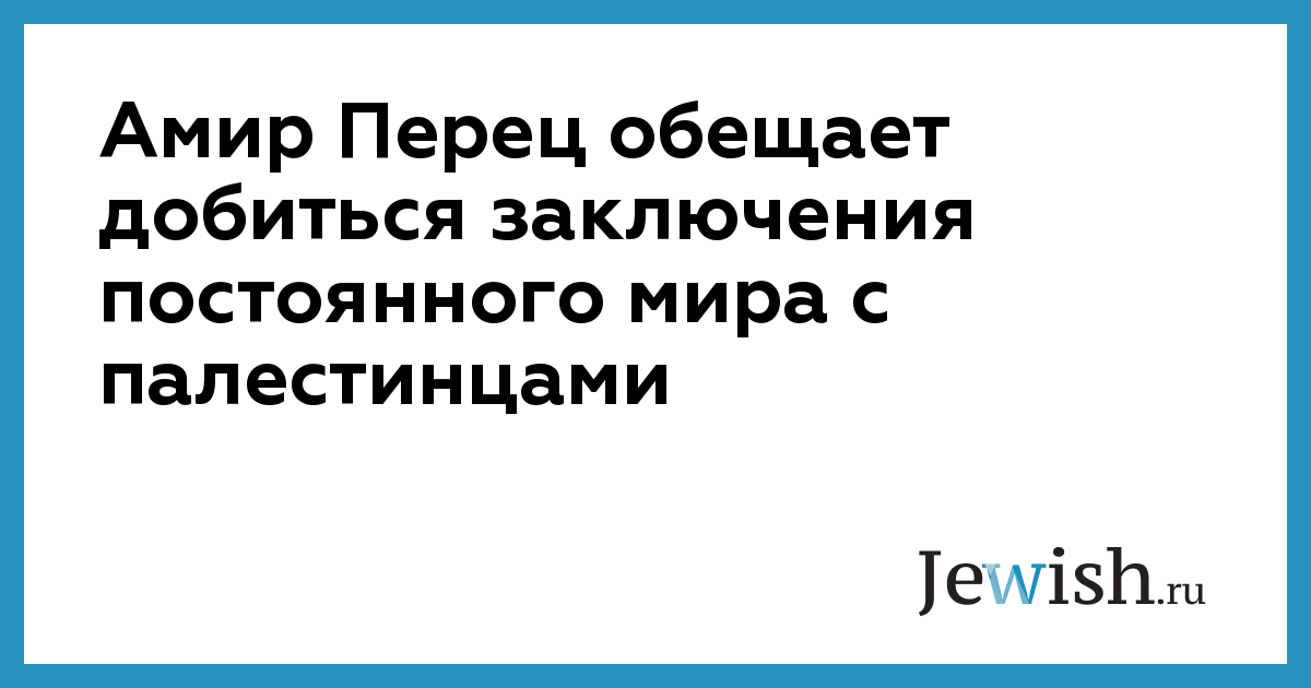 Амир Перец обещает добиться заключения постоянного мира с палестинцами