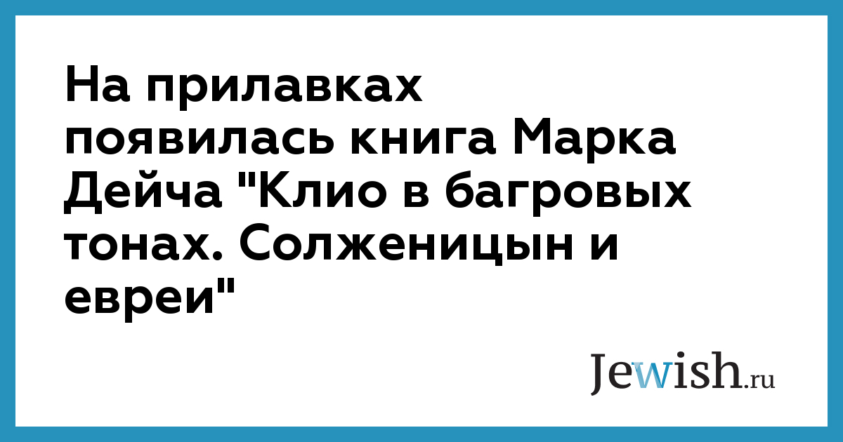На прилавках книжных магазинов появилась новая книга обозревателя “Московского комсомольца” Марка Дейча “Клио в багровых тонах. Солженицын и евреи”, выпущенная издательством “Детективпресс”.