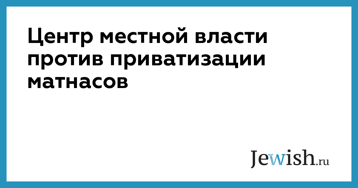 План постепенной передачи в частные руки системы центров культуры и спорта (матнасов), родившийся в недрах главной бухгалтерии министерства финансов, вызвал резкие возражения мэров. Ади Эльдар призвал коллег воздержаться от сотрудничества с правительственным чиновниками, продвигающими идею приватизации матнасов «из соображений экономической целесообразности». Представители правления Центра местной власти подчеркивают, что коммерциализация местных учреждений культуры будет означать закрытие многих программ, связанных с молодежью, новыми репатриантами, социально слабыми слоями населения.