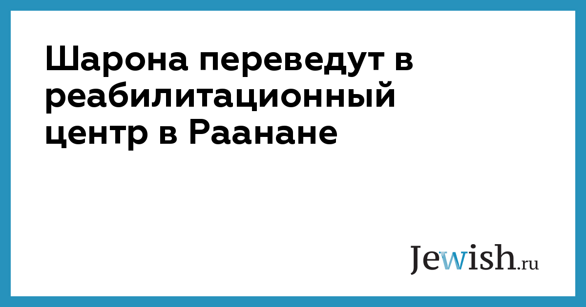 Премьер-министра Израиля Ариэля Шарона могут перевести в клинику, специализирующуюся на лечении больных, длительное время находившихся в состоянии комы. В иерусалимскую больницу "Хадасса", где сейчас лежит Шарон, были приглашены два специалиста реабилитационного центра "Ловенштейн" в городе Раанана, сообщает РИА Новости.