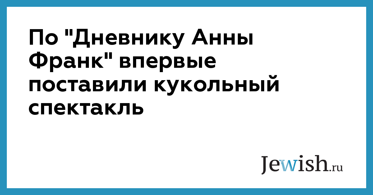 По "Дневнику Анны Франк" впервые поставили кукольный спектакль