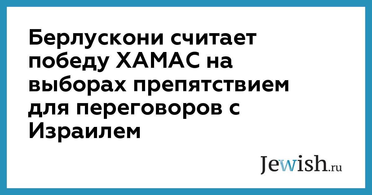 Берлускони считает победу ХАМАС на выборах препятствием для переговоров с Израилем