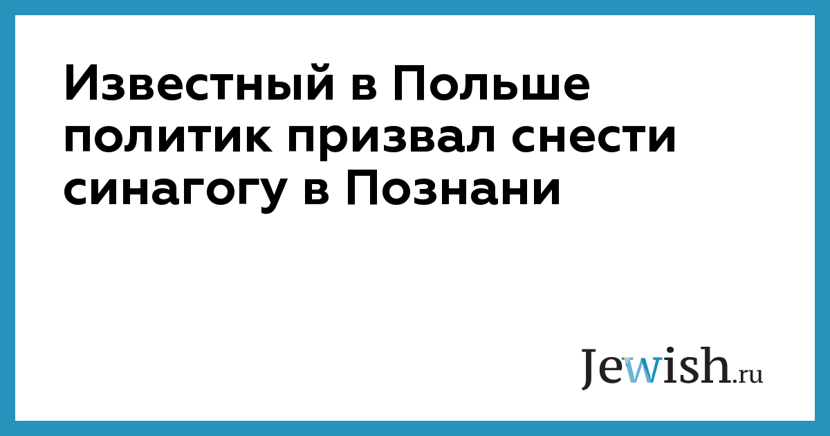 Известный в Польше политик, член правящей партии "Закон и справедливость" Мартин Либицки призвал снести синагогу в Познани. Решение отреставрировать молельный дом евреев, построенный в 1907 году, он назвал "открыто антипольским актом" и "частью плана "культурной войны", которая ведет к "минимизации польского и католического влияния в городе".