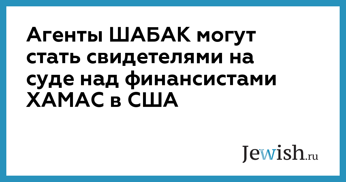 Агенты ШАБАК могут стать свидетелями на суде над финансистами ХАМАС в США