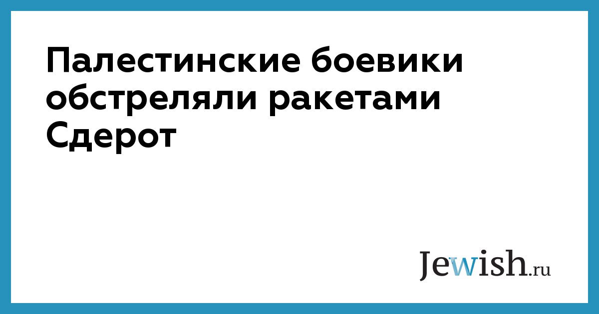 Палестинские боевики нанесли ракетный удар по израильскому городу Сдерот. В результате один израильтянин получил несерьезные ранения. Кроме того были повреждены несколько автомобилей. Ракетная установка палестинских боевиков была размещена в секторе Газа.
