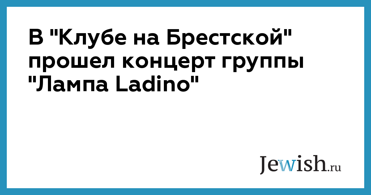 30 января в «Клубе на Брестской» состоялся концерт группы «Лампа Ladino», которая с помощью рок-инструментов и джазовых аранжировок адаптирует этническую музыку евреев-сефардов, исполняя авторские обработки старинных сефардских романсов на еврейско-испанском языке («ладино»).
