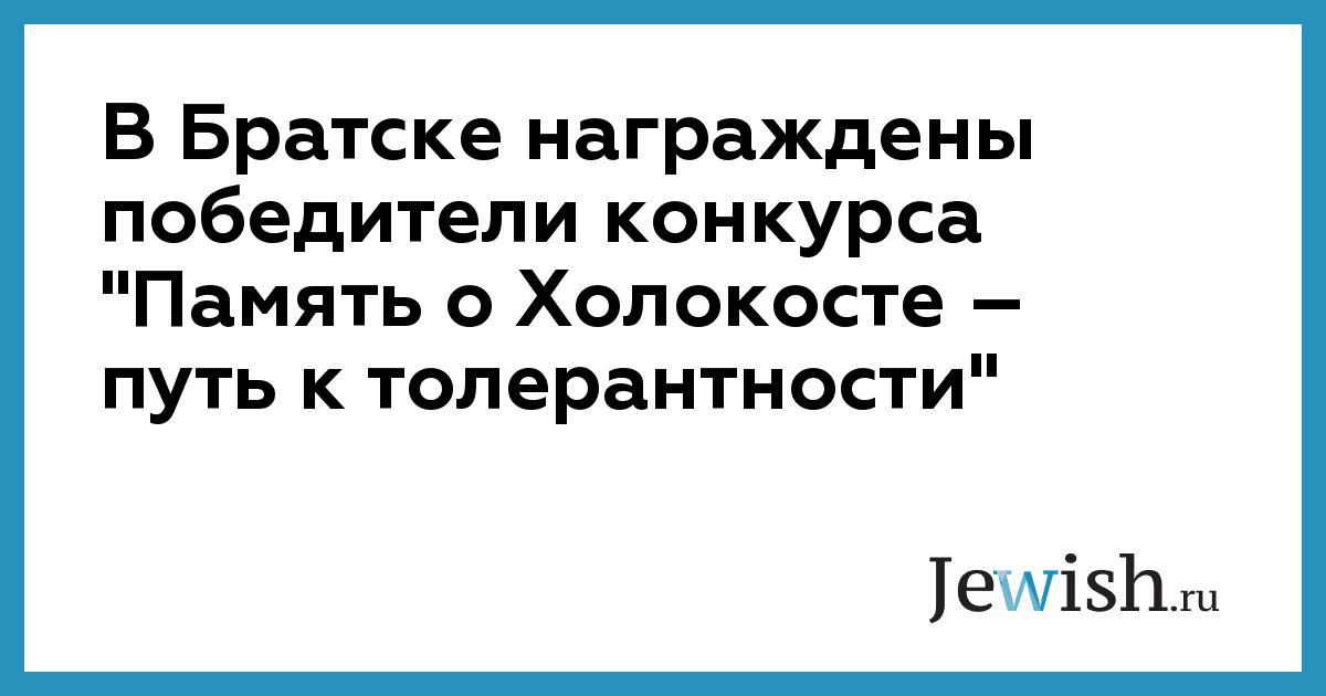 В Братске награждены победители конкурса "Память о Холокосте – путь к толерантности"