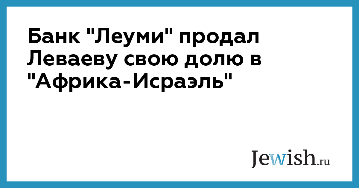 Банк "Леуми" продал Леваеву свою долю в "Африка-Исраэль"