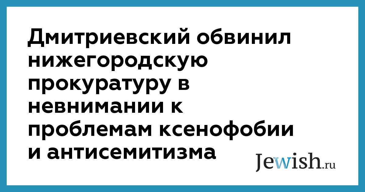 Дмитриевский обвинил нижегородскую прокуратуру в невнимании к проблемам ксенофобии и антисемитизма