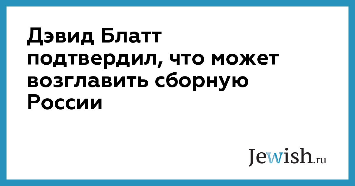 Дэвид Блатт подтвердил, что может возглавить сборную России