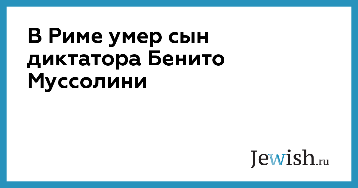 В Риме, в возрасте 78 лет, умер сын диктатора Бенито Муссолини — Романо Муссолини, сообщило в пятницу итальянское телевидение. Романо Муссолини родился в 1927 году в городе Форли. С 21 января этого года он находился в римском госпитале.