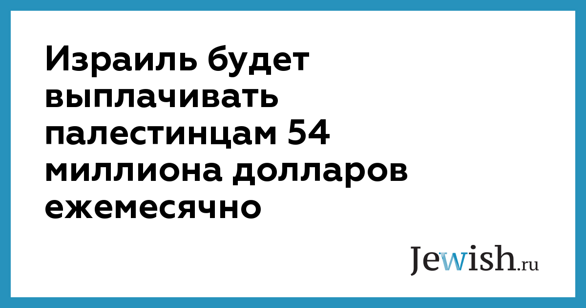 Израиль будет выплачивать палестинцам 54 миллиона долларов ежемесячно