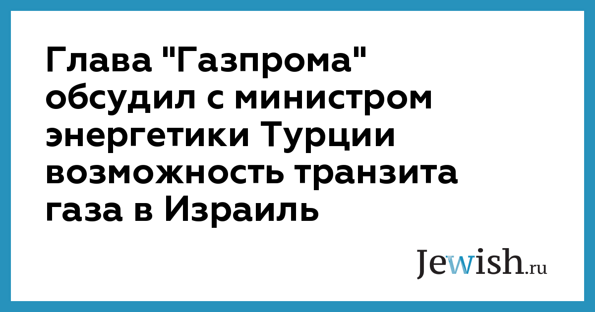 Глава "Газпрома" обсудил с министром энергетики Турции возможность транзита газа в Израиль