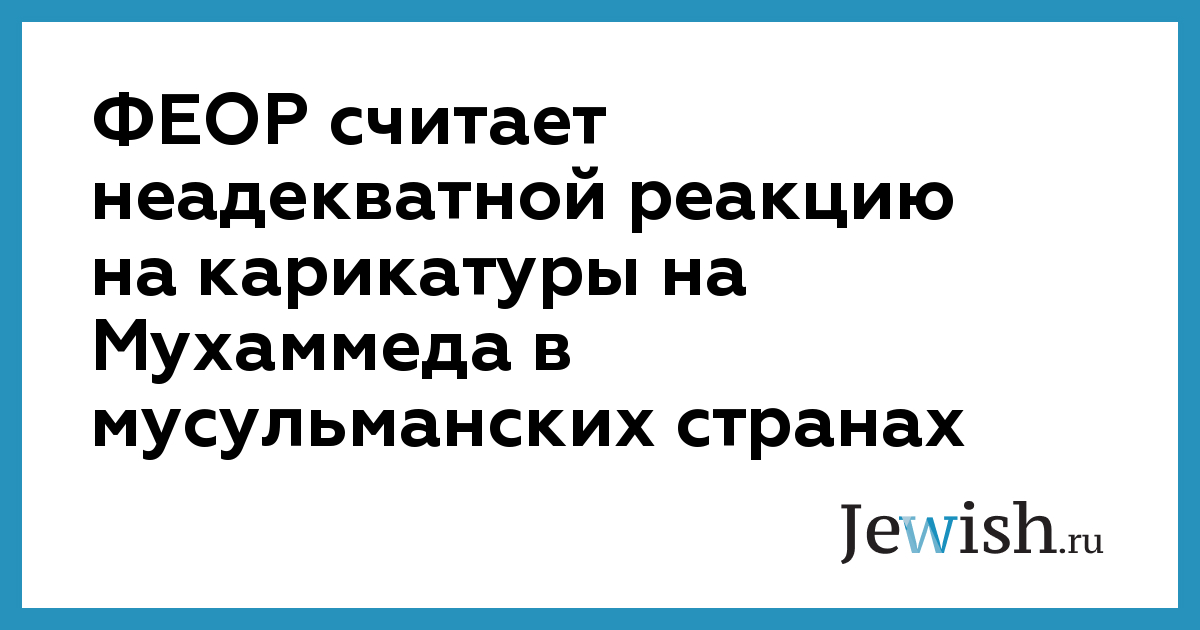 В Федерации еврейских общин России (ФЕОР) считают неадекватной реакцию тех, кто поджигает посольства и устраивает погромы в ответ на карикатуры на пророка Мухаммеда, сообщает "Интерфакс".
