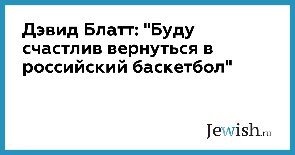 Дэвид Блатт: "Буду счастлив вернуться в российский баскетбол"