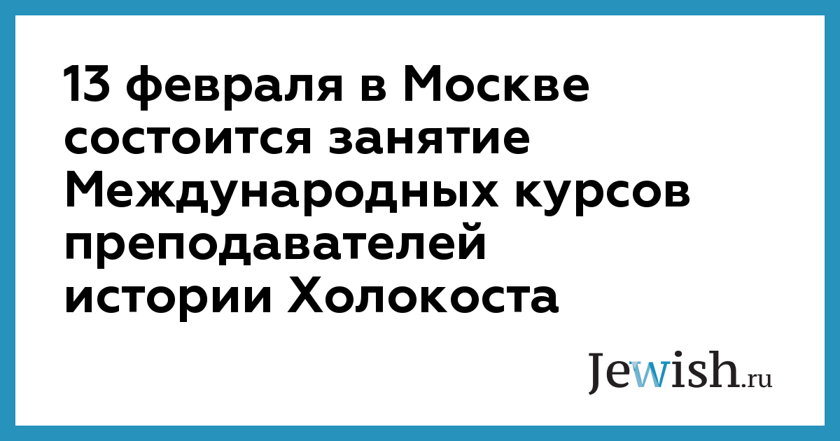 13 февраля в Москве состоится занятие Международных курсов преподавателей истории Холокоста