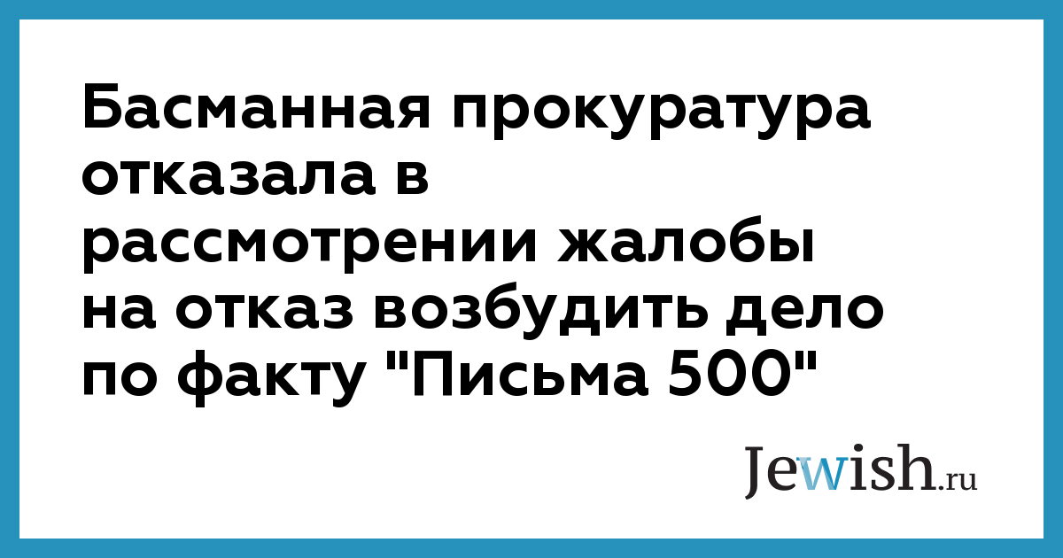 Басманная прокуратура отказала в рассмотрении жалобы на отказ возбудить дело по факту "Письма 500"